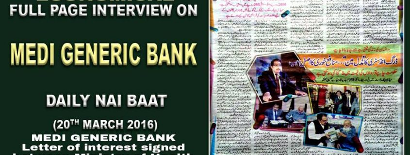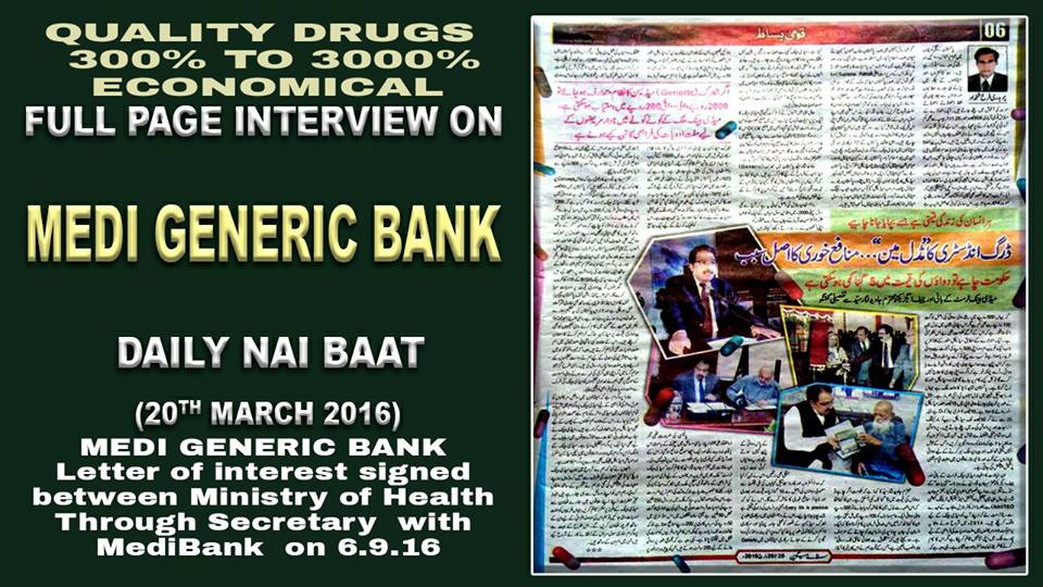 A joint initiative inshallah of Governments Corporate and Civil Society . It will save millions of lives. The published article in march is realised within six months . MEDI G BANK will be operational in record period (Inshallah) .
